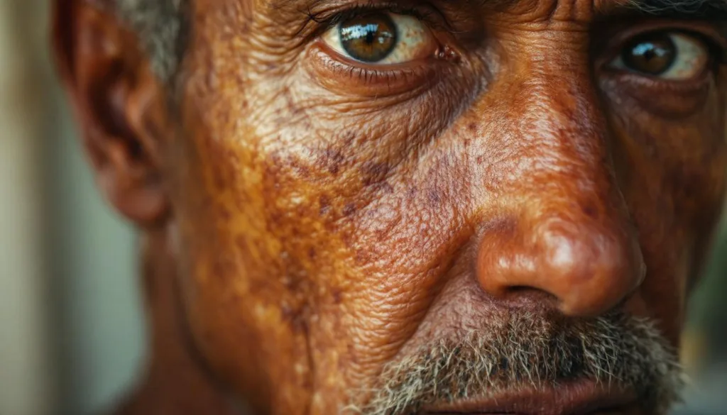 - Léntigos solares: Estas manchas marrones, generalmente planas y regulares, aparecen en áreas expuestas al sol como el rostro, escote y manos. Aunque son benignas, son un indicativo del daño solar acumulado.